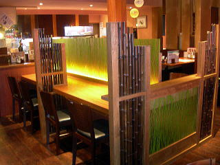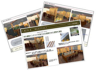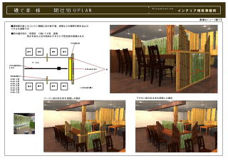 提案プラン 1.クライアント様が“竹”を御希望 2.限られたテーブルスペース・通路を最大限確保する 3.周りと調和させつつ、お店のアクセント空間にする |