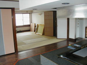 1.まずは解体作業! カウンターは残し、畳や床を撤去します。 |