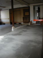 2.コンクリートを流す 土間や厨房部分に流し込みます。 |