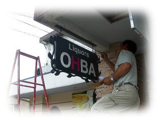 | 店舗入口に取り付ける吊り下げ看板です。 少し年季が入った雰囲気に仕上げる為、 タイル塗装で仕上げています。 でもお店のロゴはあくまでも見やすく通常より厚みをだして 重厚感も出してみましたが、 軒下に吊るして取り付けるので、軽さも必要です。 |