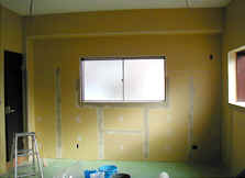 | 内部ボード張り | クロス貼りのための下地(パテ) | クロス貼り |