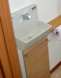 | 自動水栓にこだわりました。 | ・玄関の既存無垢部分はサンダーで磨きをかけました。 | |