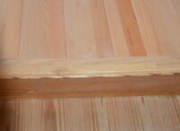 | 【廊下の床】 床がブカブカ お施主さんは下地もだめだろう!と思われていましたが、写真の通り下地は全然OKでした。 上に張ってあったフローリング材の層になっているベニヤが経年劣化でブカブカしていました。 このお宅は本当に優秀で下地は替える必要はあまりありませんでした。 |