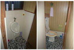 | 【トイレ】 小便器と大便器と分かれている昔のタイプのおトイレでした。 解体すると。。。すごい。昔の造りかたです! 床は下地、土台からやりかえました。 水道配管もある程度すべて新しくしました。 |