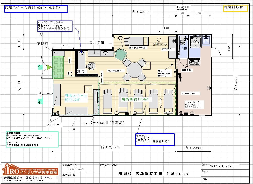 新規接骨院のOPENのための物件探しから、店舗の内装はもちろん、 接骨院としての平面計画、看板サイン計画までいっしょに考えさせて いただきました。 |