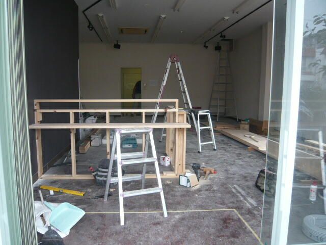 予算を押さえる為に受付カウンターを大工工事による造作工事としました。 |