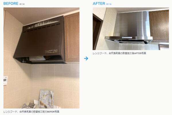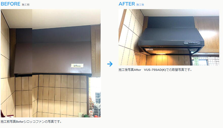 エムズ鴨江さんのレンジフード、換気扇の取替施工事例です。