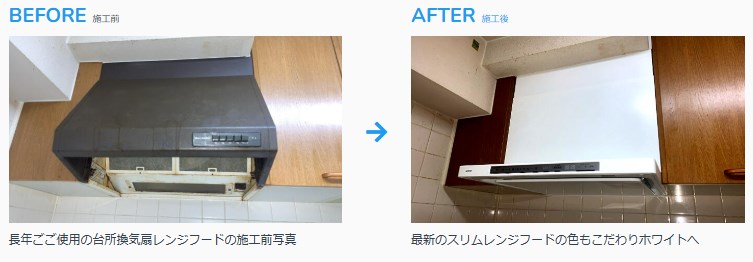 台所の換気扇プロペラファンからスリムレンジフードへの取替施工事例です